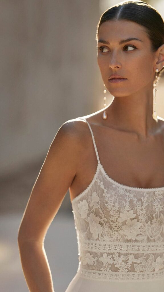 L’eleganza della spallina gioiello unita alla comodità dello scollo quadrato.