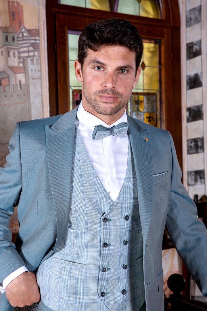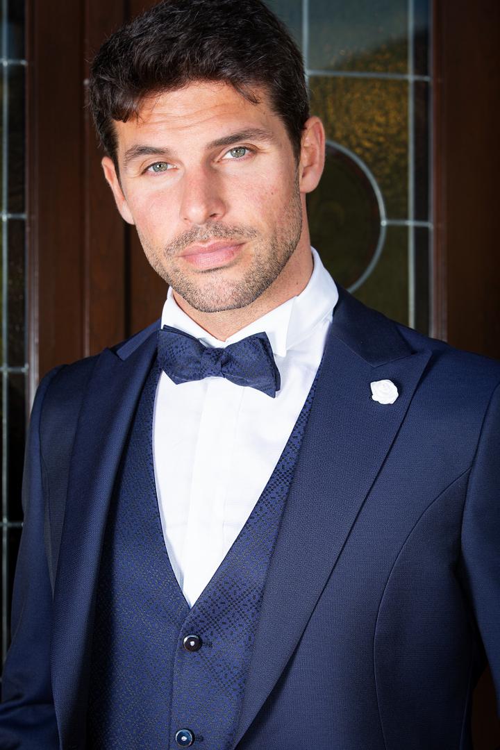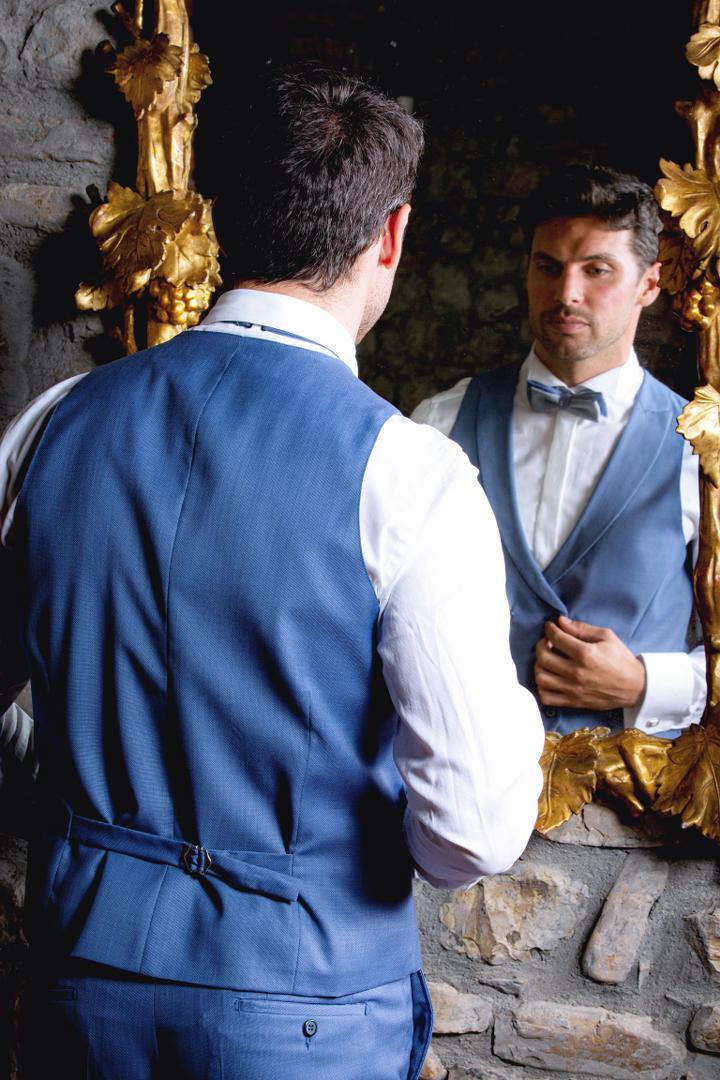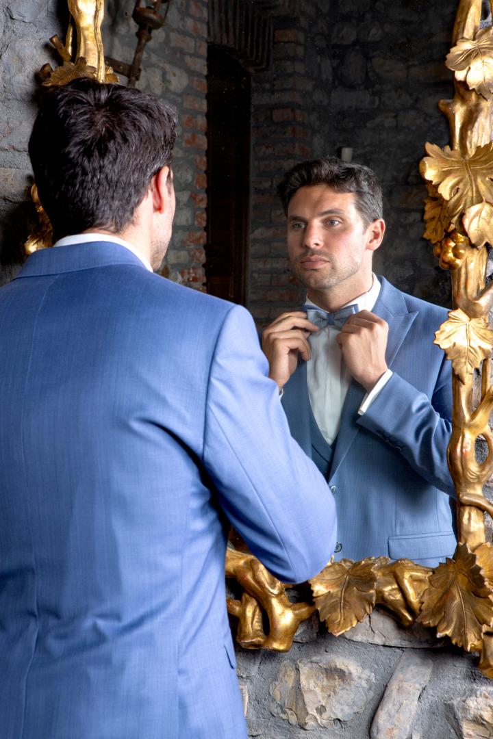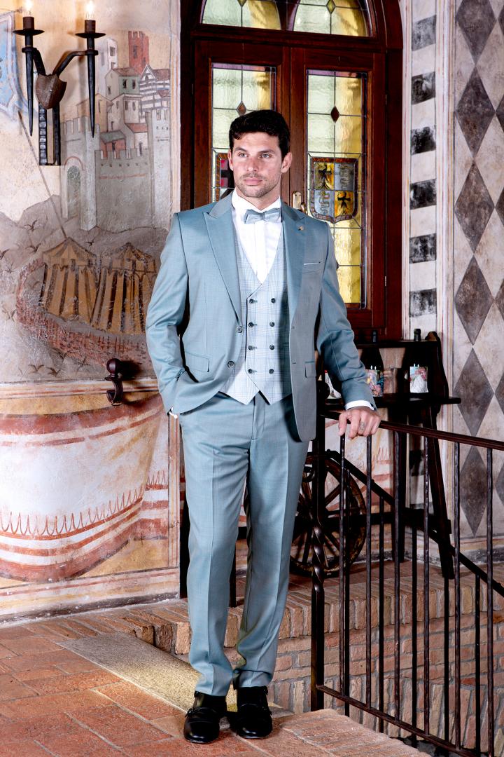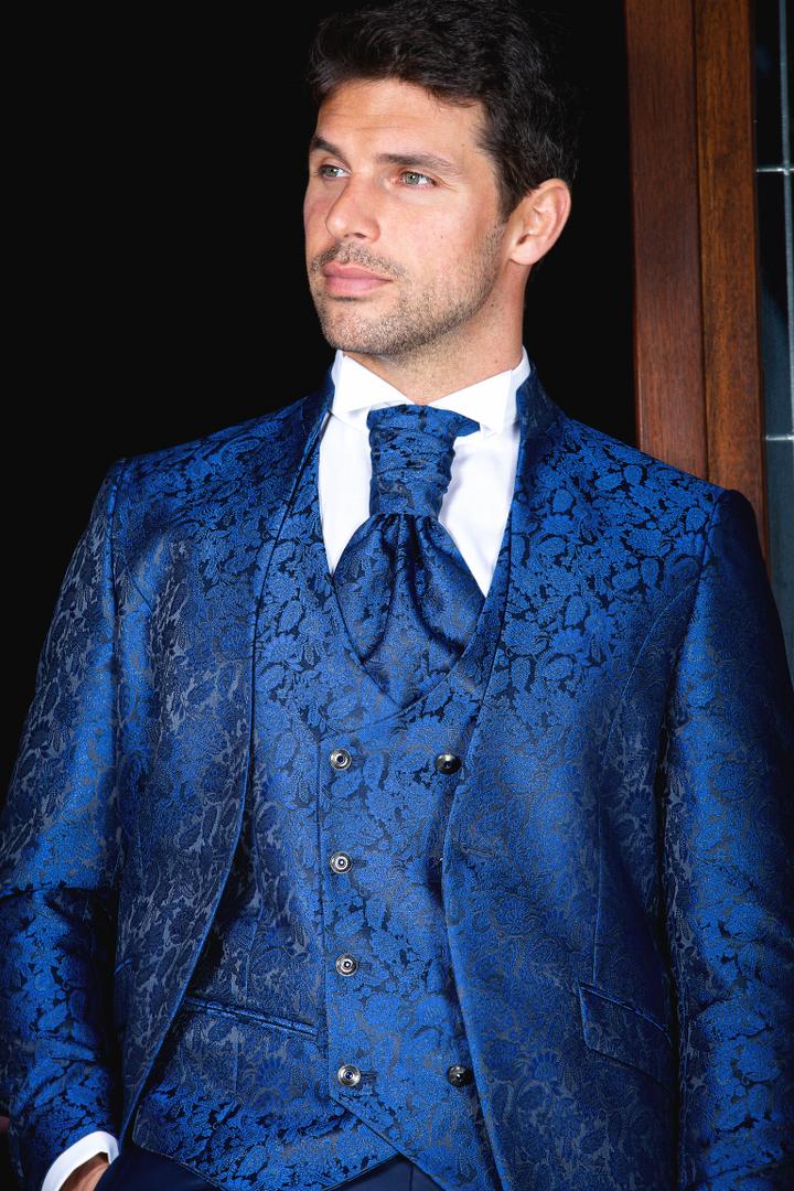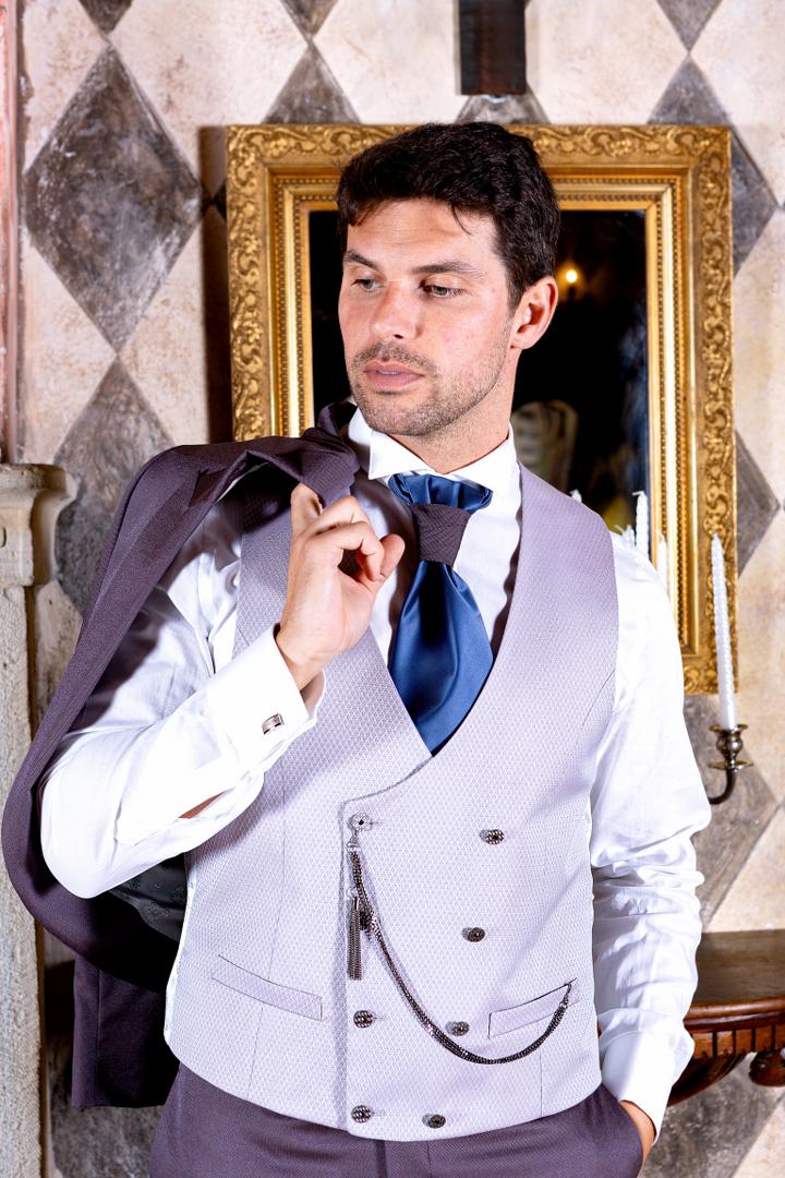 Abiti per lo sposo più esigente. Colori che vanno dal blu scuro al blu chiaro attraversando sfumature uniche nel loro genere. Abiti sposo impreziositi da finiture sartoriali e bottoni gioiello Swarovski. I revere possono essere a lancia oppure il collo della giacca può essere a scialle ma con un contrasto sul colore di base.