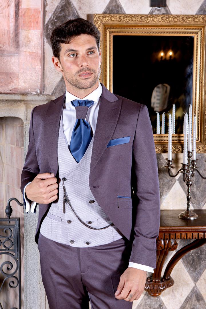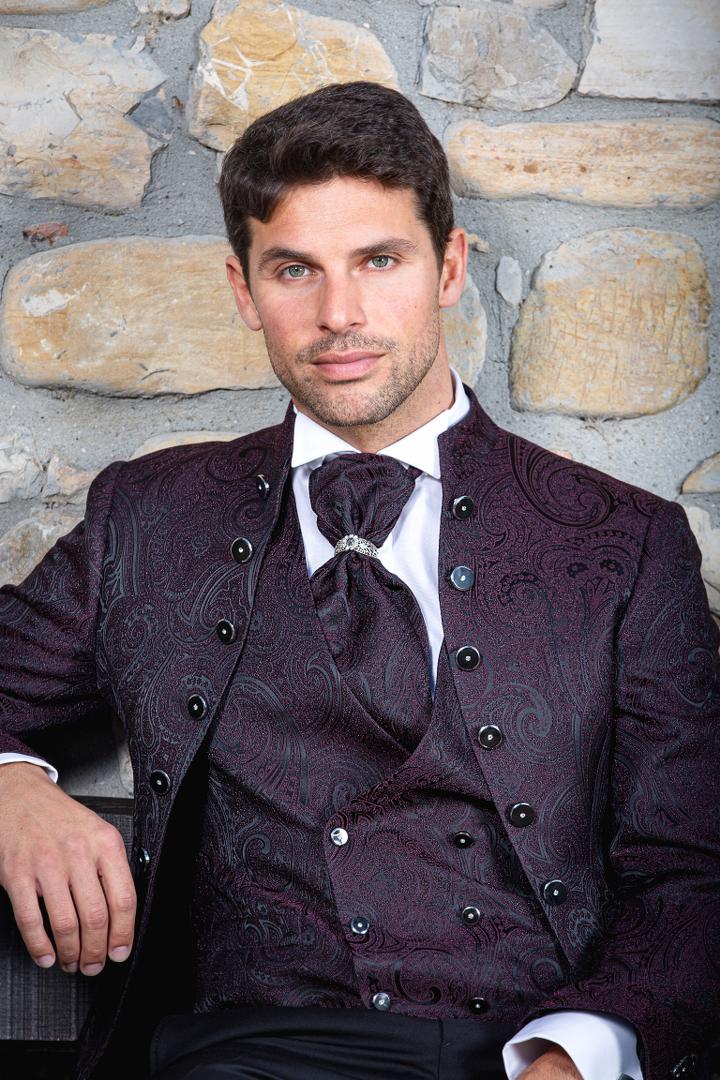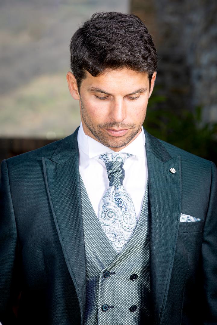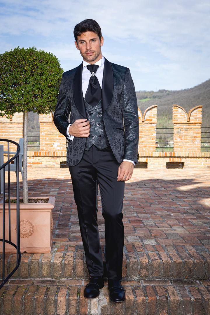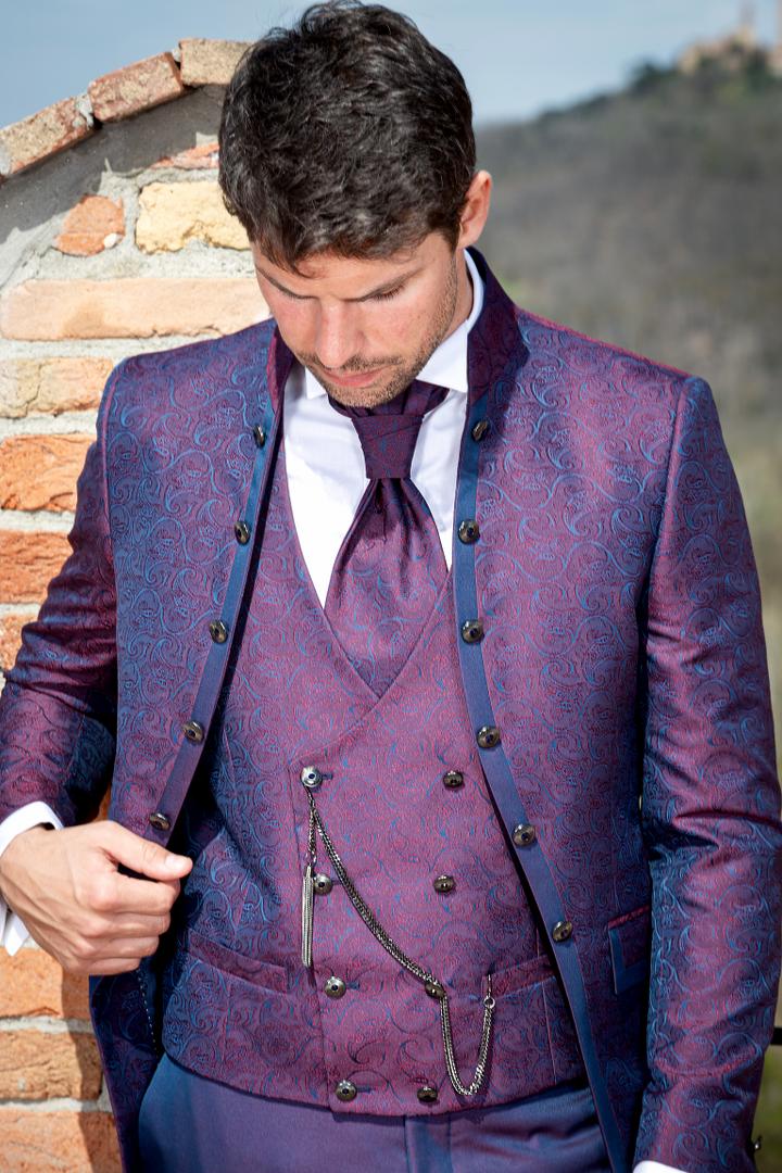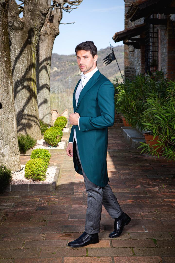 Le giacche possono anche avere il taglio alla “coreana” che ne caratterizza l’immagine cerimonia dando nel contempo uno stile innovativo allo sposo. I tessuti possono essere lucidi, semilucidi o damascato, oppure in pura lana di Tasmania con colori brillanti e gilet grigi a contrasto. Completano il quadro i cravattoni, le cravatte e tutti gli altri accessori da collo come papillon e fiocchi annodati.