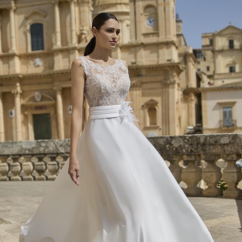 Un altro modello che abbiamo scelto per le future spose By @dalinatelier 💞 Corpino accollato, in pizzo ricercato e gonna in organza L’abito da sposa