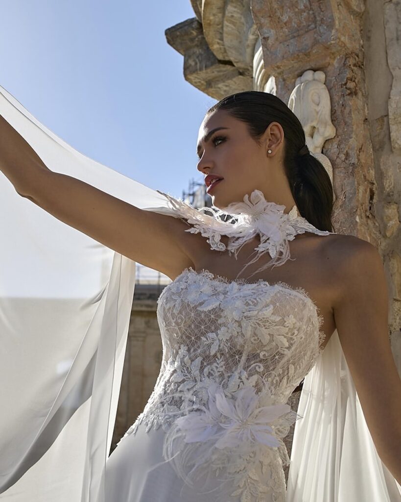 Un altro modello che abbiamo scelto per le future spose By @dalinatelier 💞 Corpino accollato, in pizzo ricercato e gonna in organza L’abito da sposa